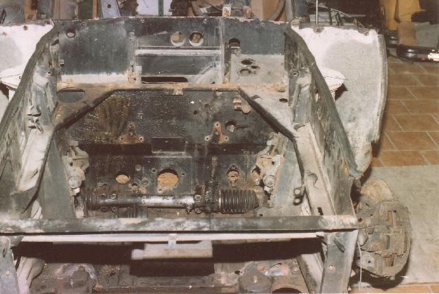Man darf sich nicht von den Rost und Lack irritieren lassen. Nach technischem Aufbau des Fahrzeuges einschließlich Karosserie habe ich alles wieder komplett zerlegt und den Rahmen sandgestrahlt, im Säurebad gereinigt und im Zinkbad feuerverzinkt. Leider hatte ich die Ablauflöcher anders geplant als tatsächlich im Zink getaucht wurde. Daher sind statt 5 ca. 50 Kg Zink aufgetragen worden: