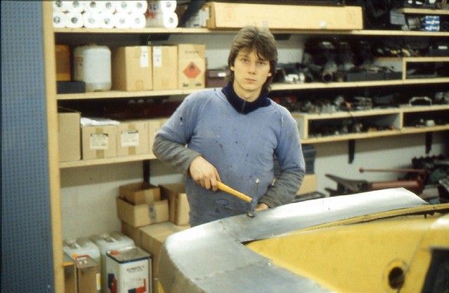 S3b.1: Auf diesem Bild treibe ich ein Blech für die Heckhaube.
